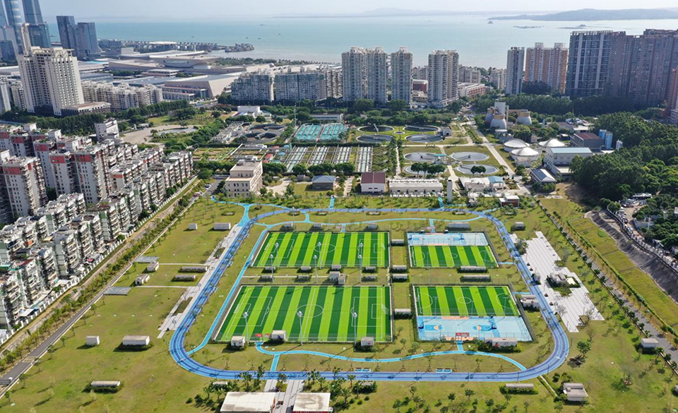 利用前埔水质净化厂上盖空间建设的便民体育设施“古楼·悦动园”(来源:厦门日报)
