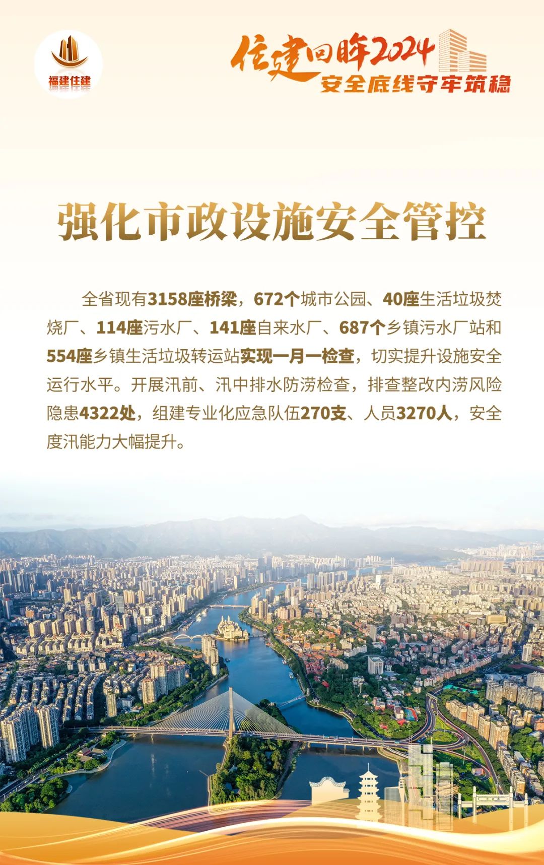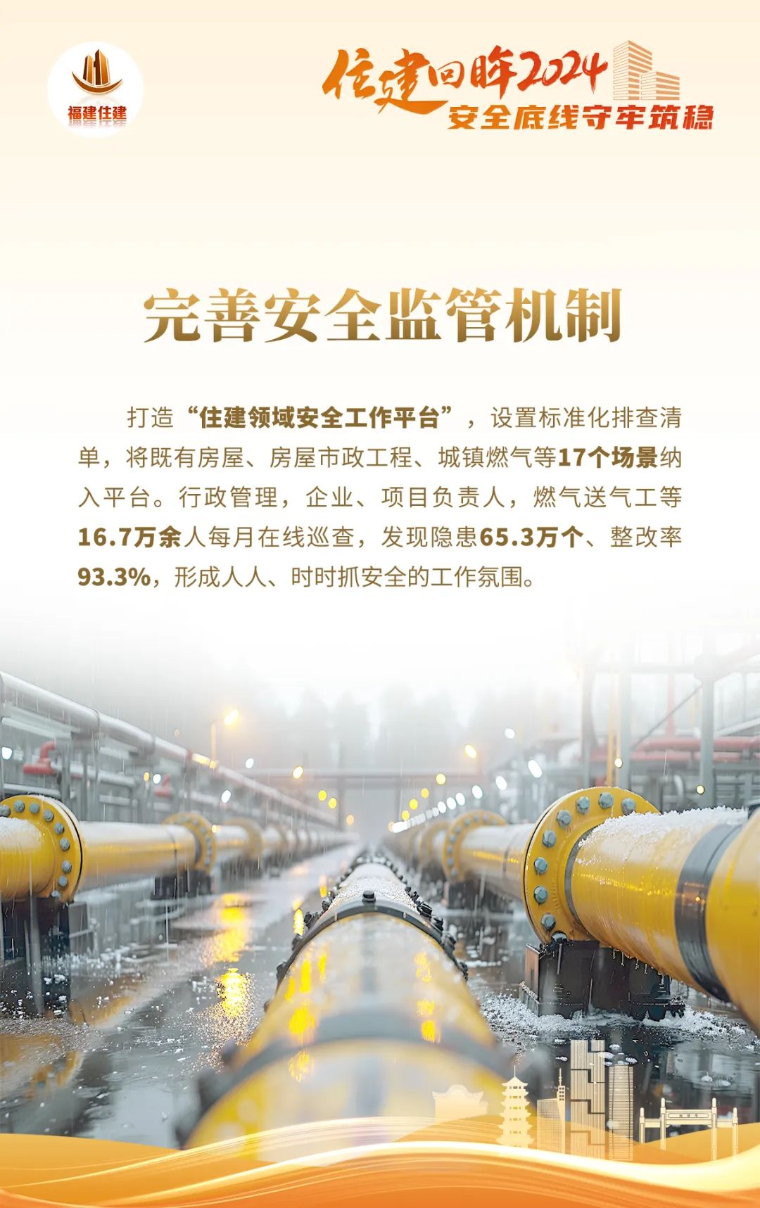 回望2024年,一组组数字令人振奋,一项项成效催人奋进,为了深入展现全省住建系统高质量发展情况,“福建住建”公众号推出《住建回眸2024》系列海报,本期为系列第一期《安全底线守牢筑稳》,让我们通过数字看全省住建系统是如何守住安全底线。