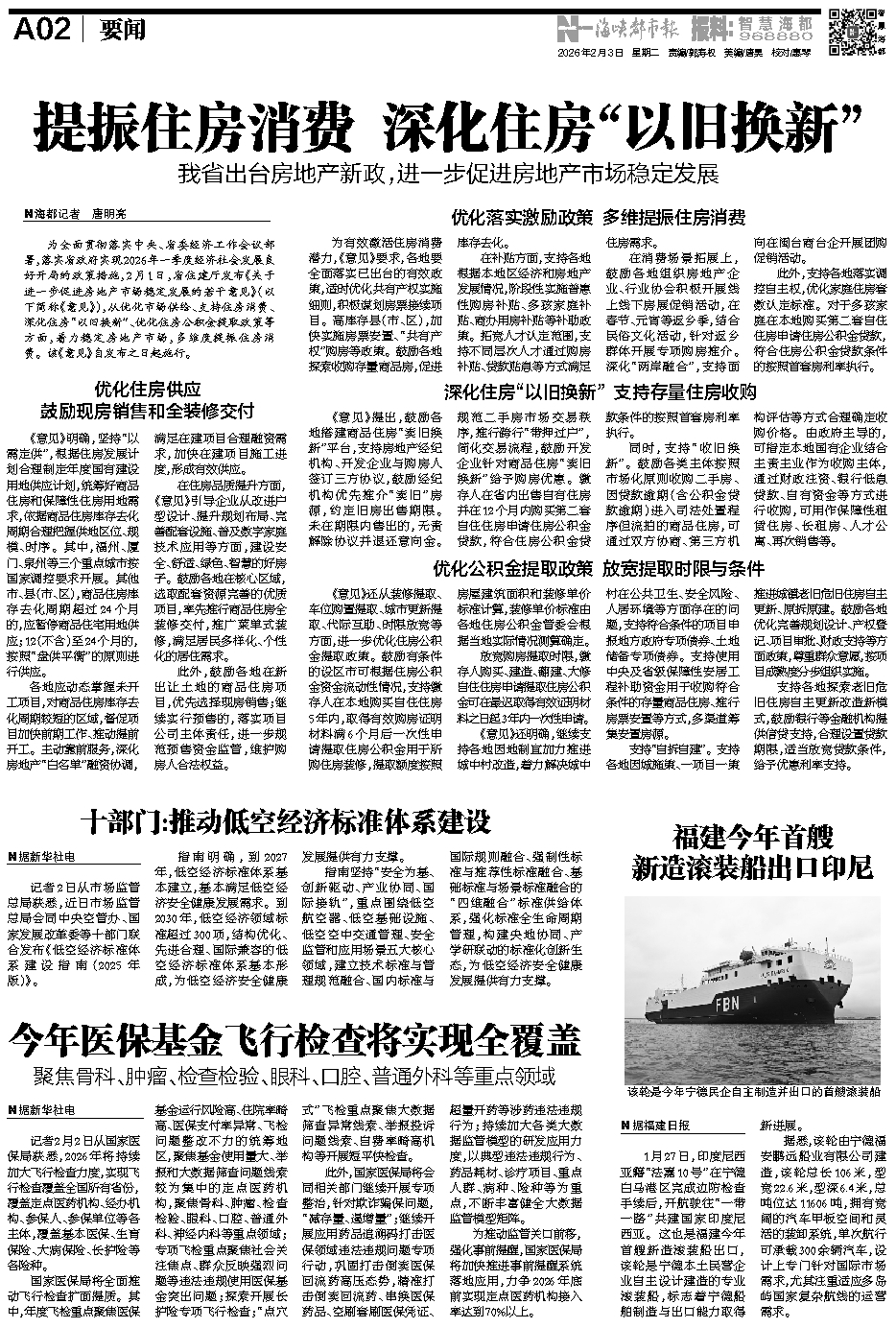为全面贯彻落实中央、省委经济工作会议部署,落实省政府实现2026年一季度经济社会发展良好开局的政策措施,2月1日,省住建厅发布《关于进一步促进房地产市场稳定发展的若干意见》(以下简称《意见》),从优化市场供给、支持住房消费、深化住房“以旧换新”、优化住房公积金提取政策等方面,着力稳定房地产市场,多维度提振住房消费。该《意见》自发布之日起施行。
