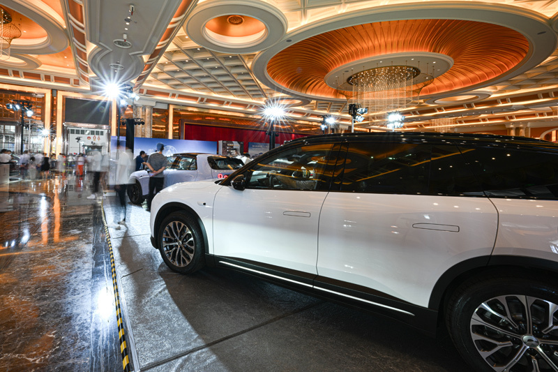 在位于海口的海南国际会展中心,人们在“2025海南国际车展暨海口市新能源汽车下乡活动”上参观(2025年5月2日摄)。新华社记者 蒲晓旭 摄