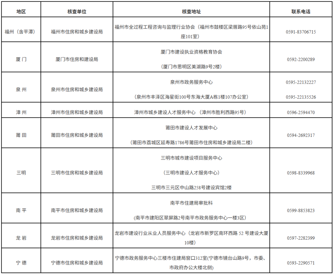 (八)考后资格核查时间、发放证书时间及方式以“福建省住房和城乡建设厅http://zjt.fujian.gov.cn/—行业管理—执业注册—资格考试”栏目通知为准。