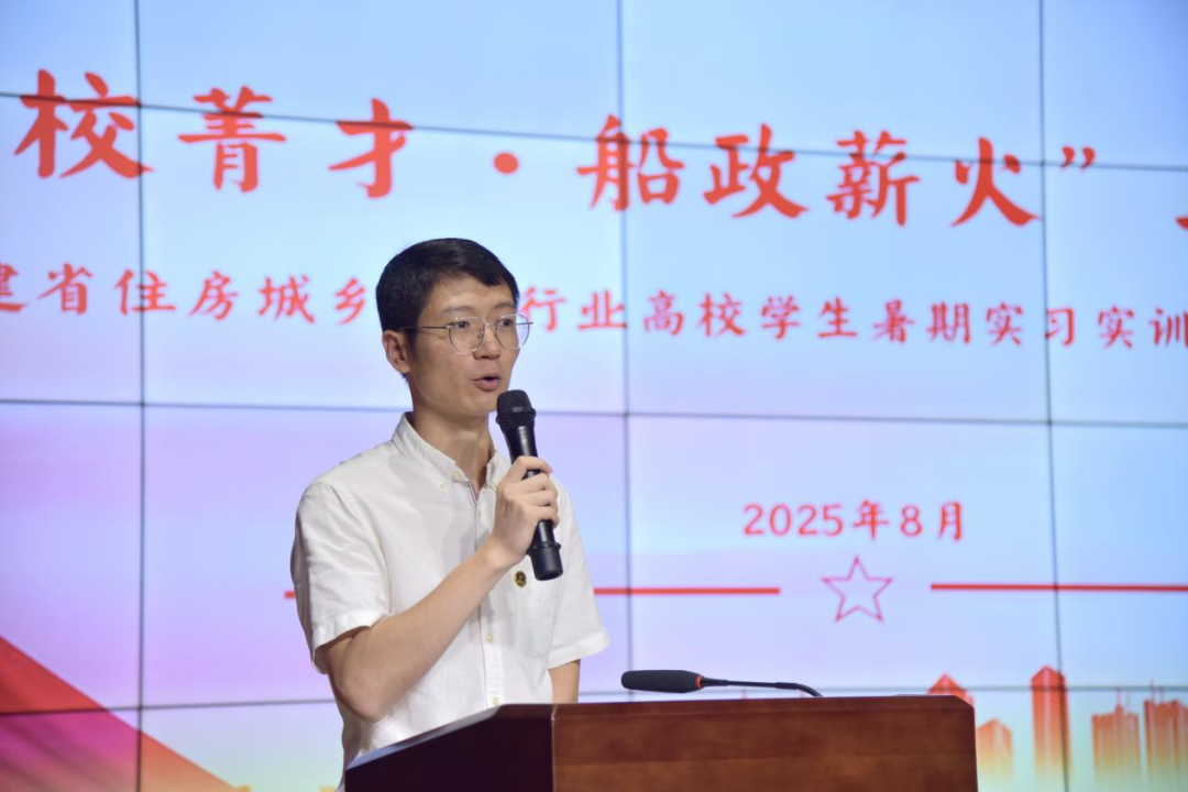 为弘扬船政精神,加强学生与行业企业交流互动,省住建厅联合省建设投资集团、省建筑设计院在福州马尾船政博物馆举办“高校菁才·船政薪火”——福建省住房城乡建设行业高校学生暑期实习实训暨青年人才研讨交流会,省住建厅党组成员、副厅长王德福,省建设投资集团有限责任公司党委副书记、董事林维出席。