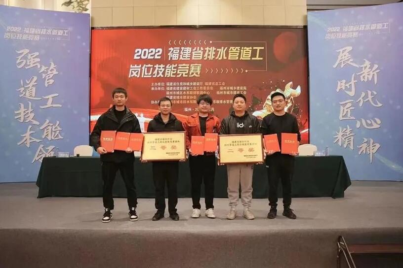 经赛事评委公平、公正、公开评判,分别授予饶银丰等10名选手“福建省排水行业排水管道工技术能手”荣誉称号;授予郑积剑等20名选手“福建省排水行业排水管道工优秀选手”荣誉称号;授予厦门二队(厦门市政排水管理有限公司)等14个代表队“团体一(二、三)等奖”、莆田一队(莆田市水质净化有限公司)等3个代表队“团体优秀组织奖”;授予“福州市城乡建设局”等6个单位“突出贡献奖”。