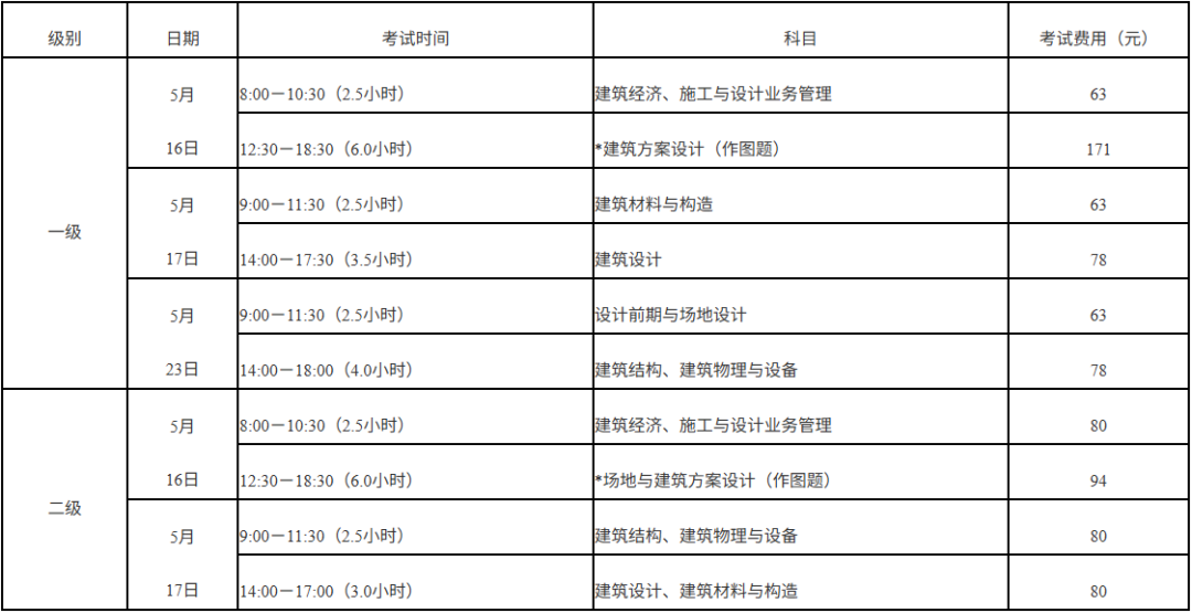 根据《人力资源社会保障部办公厅关于2026年度专业技术人员职业资格考试工作计划及有关事项的通知》(人社厅函〔2026〕6号)安排,2026年度一级注册建筑师资格考试于5月16日、17日、23日举行,二级注册建筑师资格考试于5月16日、17日举行。现将报考有关事项公告如下: