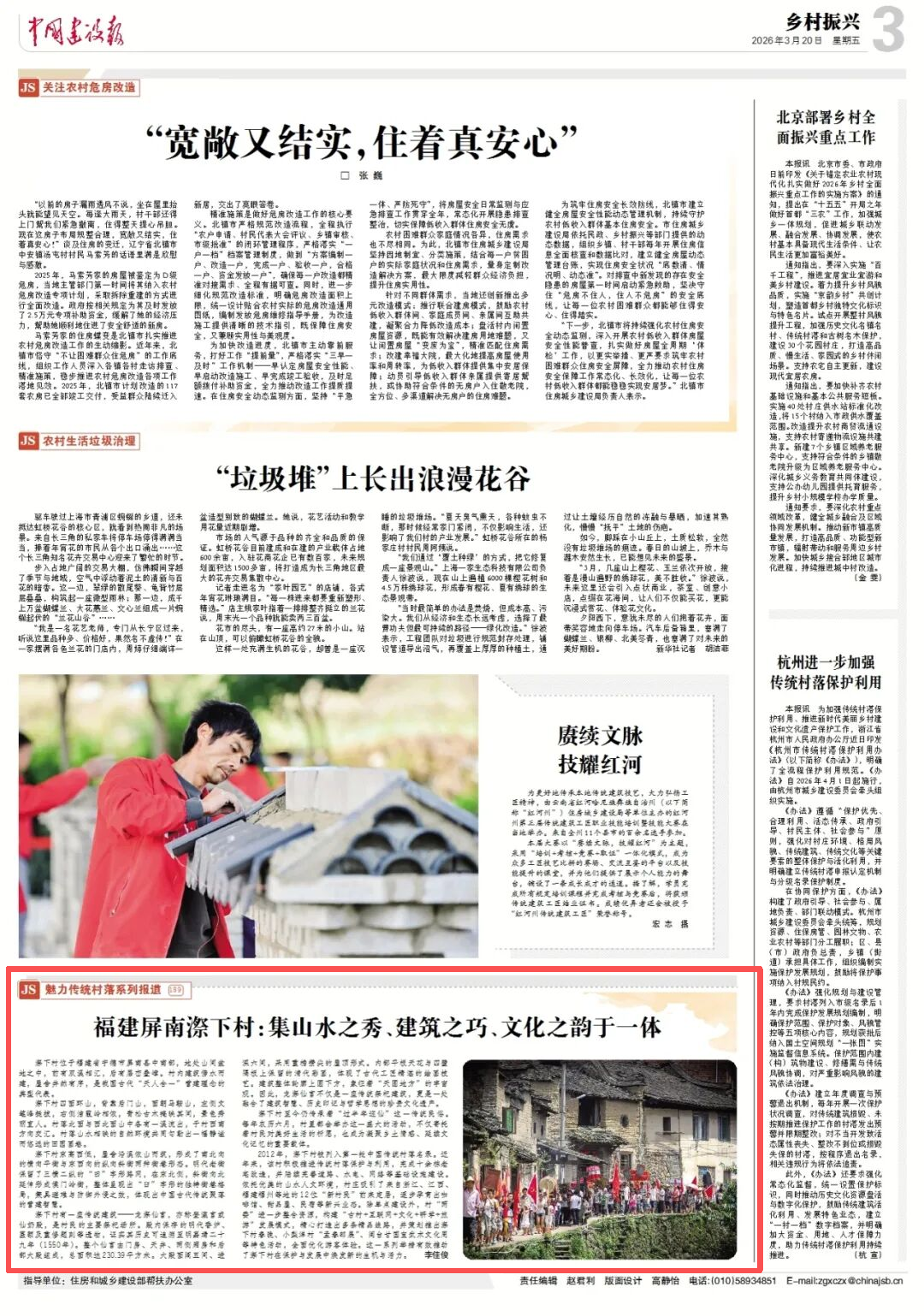 2012年,漈下村被列入第一批中国传统村落名录。近年来,该村积极推进传统村落保护与利用,完成十余栋老宅改造,并陆续完善道路、水电、网络等基础设施建设。依托优美的山水人文环境,村庄吸引了来自浙江、江西、福建福州等地的12位“新村民”前来定居,逐步孕育出咖啡馆、甜品屋、民宿等新兴业态。除单点建设外,村“两委”进一步整合资源,构建“古村+互联网+文化+研学+旅游”发展模式,精心打造出多条精品线路,并策划推出漈下村春晚、小梨洋村“孟春邮展”、闽台甘国宝武术文化周等特色活动,全面优化游客体验。这一系列举措有效推动了漈下村在保护与发展中焕发新的生机与活力。