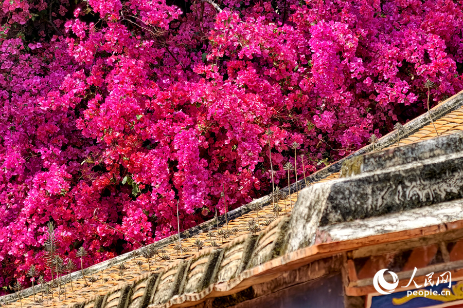 古厝屋顶被三角梅包裹。人民网记者 陈博摄