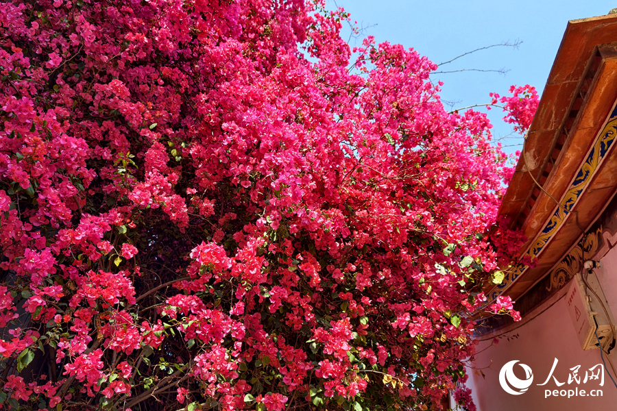 屋檐下的三角梅花枝招展,透着阳光格外娇艳。人民网记者 陈博摄