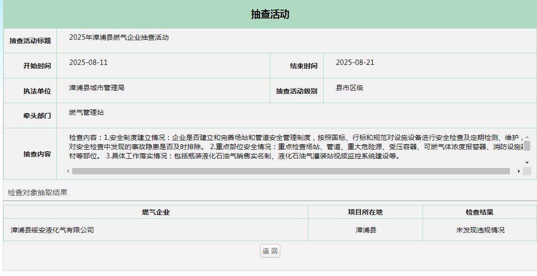 2025年漳浦县燃气企业抽查活动