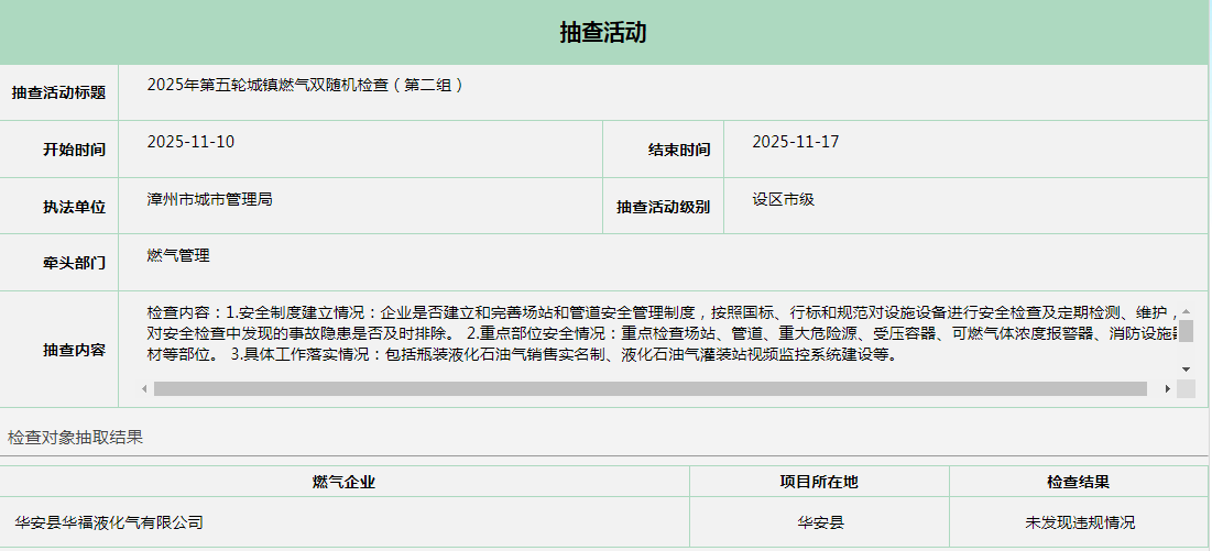 2025年第五轮城镇燃气双随机检查(第二组)